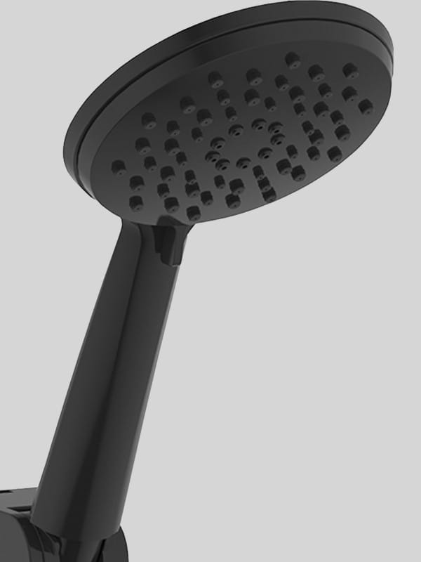 Regulowany wieszak pozwala na optymalne ustawienie słuchawki prysznicowej w zależności od potrzeb, a trzypoziomowa słuchawka prysznicowa z antypoślizgową skalą pozwala na wybór odpowiedniego strumienia wody, zapewniając zarówno delikatne, jak i intensywne doznania podczas kąpieli.