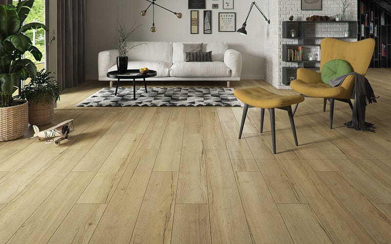 Czystość i świeżość: Jasna podłoga sprawia wrażenie sterylnej czystości, a dzięki strukturze drewna i usłojeniu, nie widać na niej kurzu tak, jak na jednolitych płytkach.