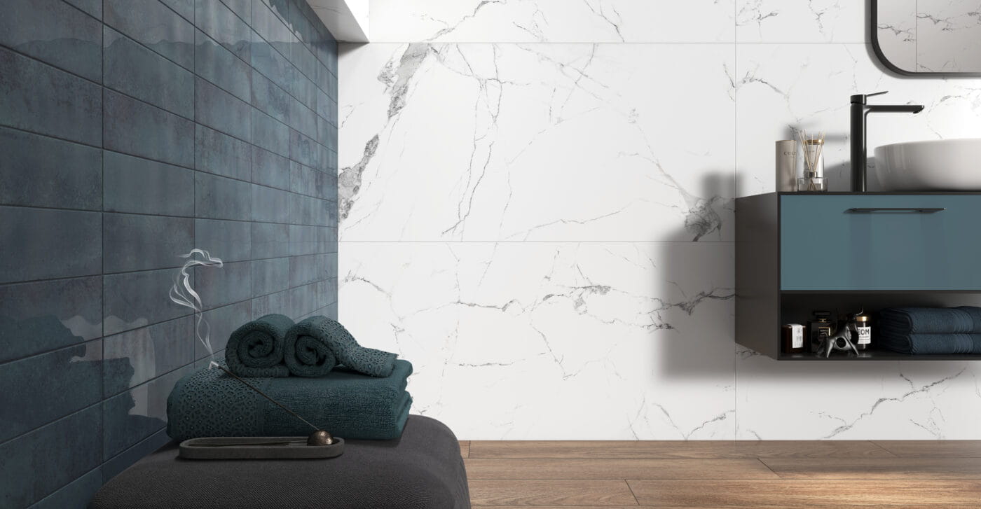 Technologia Carving – Głębia 3D: Sekretem tego modelu jest specjalne szkliwo reagujące w procesie wypału. Charakterystyczne dla marmuru żyły nie są płaskim obrazkiem – są delikatnie wyrzeźbione w powierzchni płytki. Kiedy pada na nie światło, błyszczą i mienią się w zagłębieniach, podczas gdy tło pozostaje satynowe. Daje to spektakularny efekt trójwymiarowości i autentyczności, do złudzenia przypominający naturalny, dłutowany kamień.