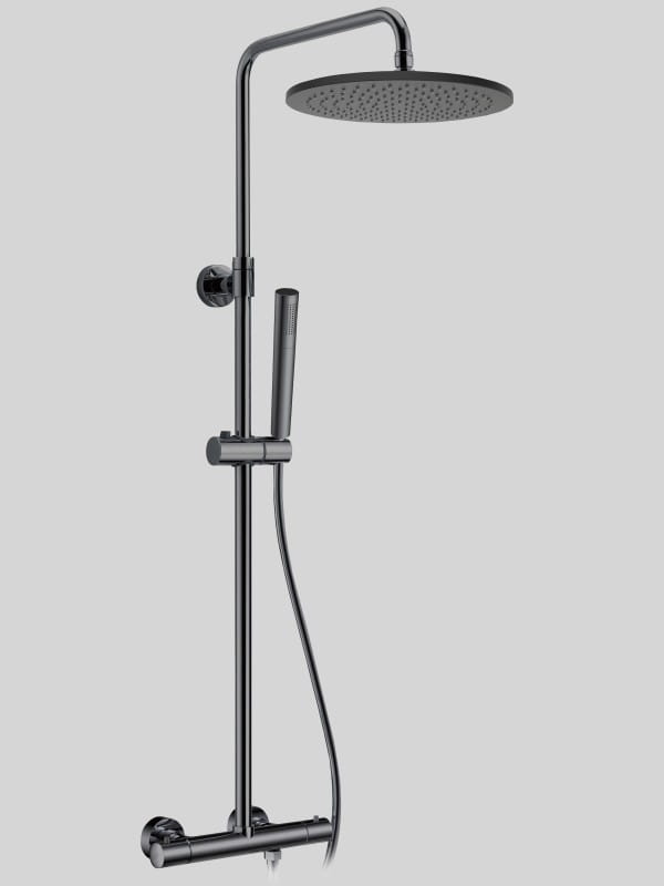 Odkryj nowoczesną kolumnę prysznicową termostatyczną w kolorze tytanowym, idealną dla tych, którzy cenią sobie zarówno styl, jak i funkcjonalność. Mosiężna bateria z wykończeniem PVD, czujnik termostatyczny Vernet i wąż prysznicowy PVC gwarantują niezawodność oraz elegancki wygląd.