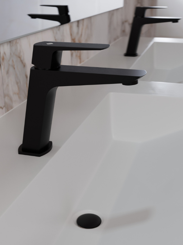 Bateria umywalkowa MARRIOT BLACK idealnie sprawdzi się w nowoczesnych łazienkach w stylu minimalistycznym lub industrialnym. Jej matowe wykończenie i prosta forma będą doskonale współgrać z surowymi materiałami, takimi jak beton czy stal, a także z drewnianymi akcentami, tworząc harmonijną i elegancką przestrzeń. To doskonały wybór dla osób ceniących sobie nowoczesny design oraz funkcjonalność.