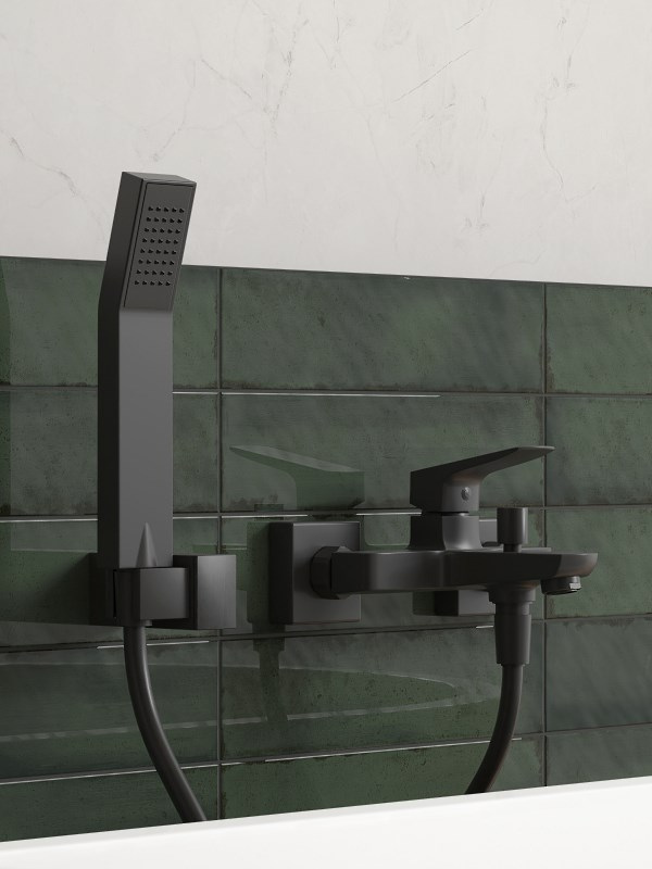 Bateria wannowa MARRIOT w kolorze czarnym to elegancka i nowoczesna armatura jednouchwytowa, wykonana z mosiądzu w matowym wykończeniu. Wyposażona w ceramiczny wkład 25 mm, czarny wąż prysznicowy z PVC zapobiegający skręcaniu oraz regulowany wieszak, łączy funkcjonalność z estetyką.