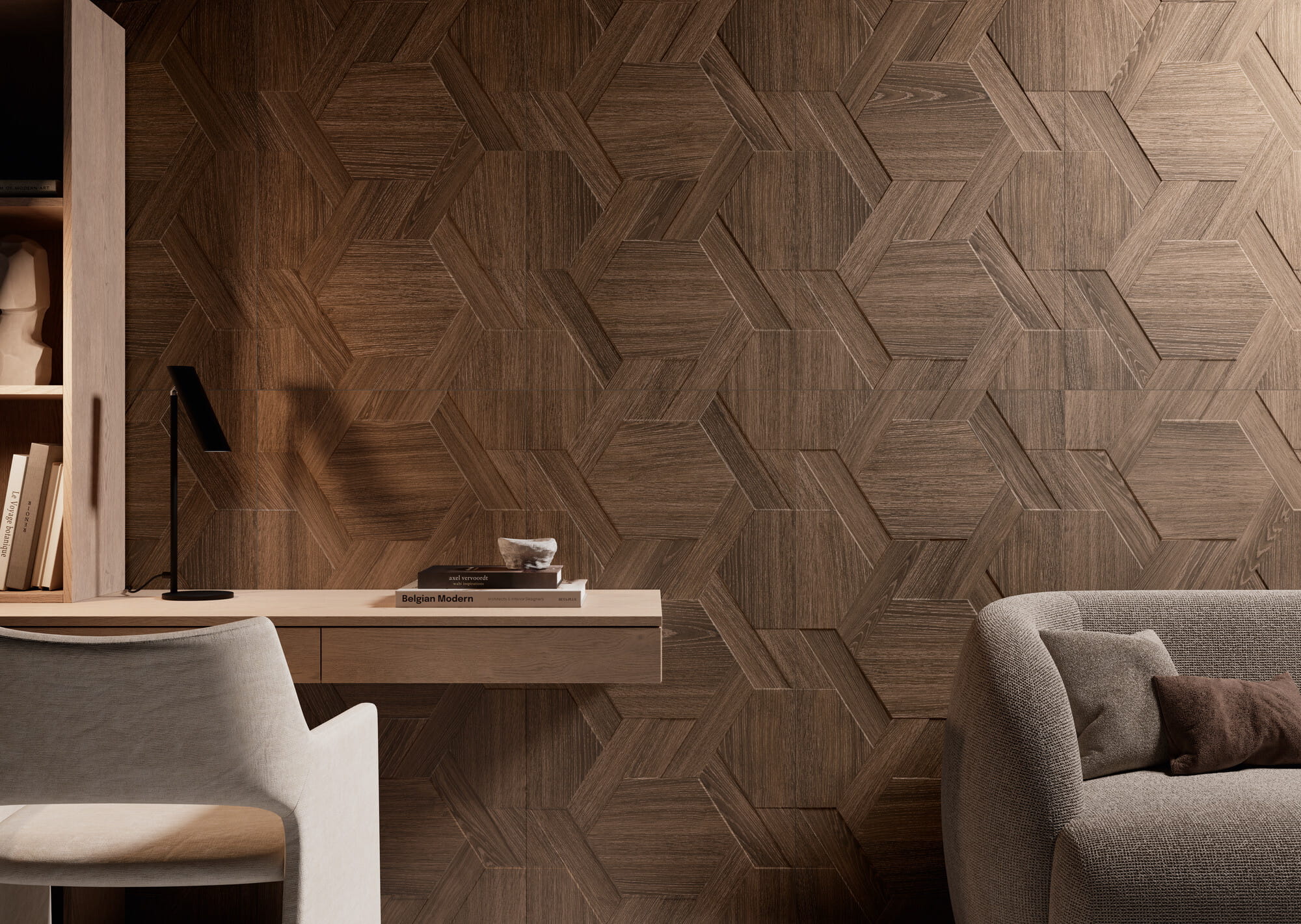 Format Monumentalny: Dzięki wymiarom 60x120 cm, ściana wygląda jak wykonana z wielkich, litych płyt drewna egzotycznego. Minimalna ilość fug to klucz do nowoczesnego, luksusowego wyglądu.