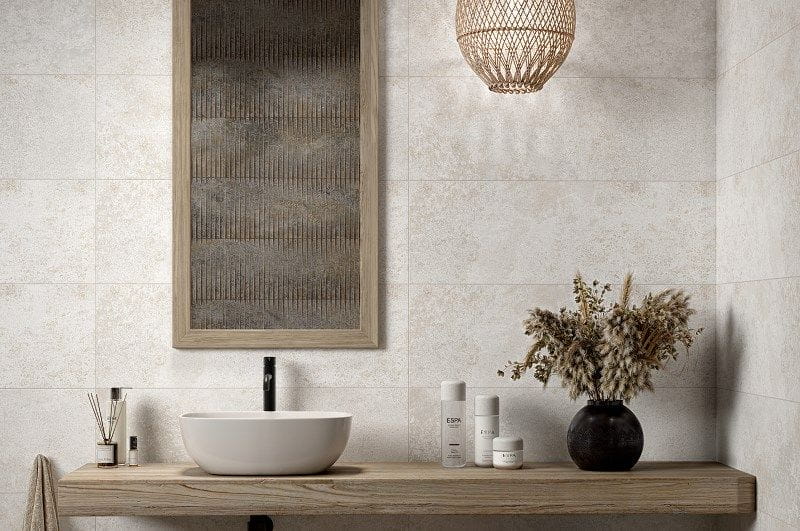 Struktura, która chwyta światło: Model Art White to mistrzostwo w operowaniu światłocieniem. Na jasnym, mlecznym tle zastosowano trójwymiarową fakturę. Dzięki niej, nawet jednolita biała ściana przestaje być płaska. Załamania powierzchni pięknie współpracują ze światłem (sztucznym i dziennym), tworząc subtelny, zmienny wzór. To doskonały sposób na ożywienie małej łazienki bez wprowadzania przytłaczających kolorów. Format 30x90 cm, ułożony poziomo, działa jak optyczny korektor – "rozciąga" ściany, sprawiając, że pomieszczenie wydaje się szersze.
