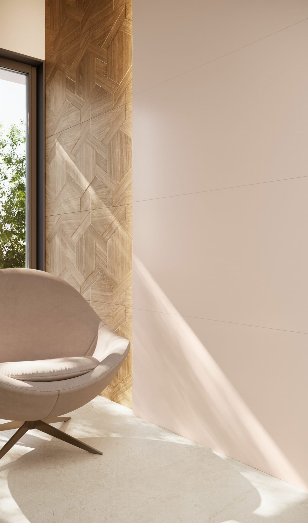 Wielki Format, Wielki Efekt: Rektyfikacja krawędzi pozwala na zastosowanie fugi o szerokości zaledwie 1 mm, co przy wymiarze 60x120 cm daje efekt luksusowej, jednolitej tafli koloru.