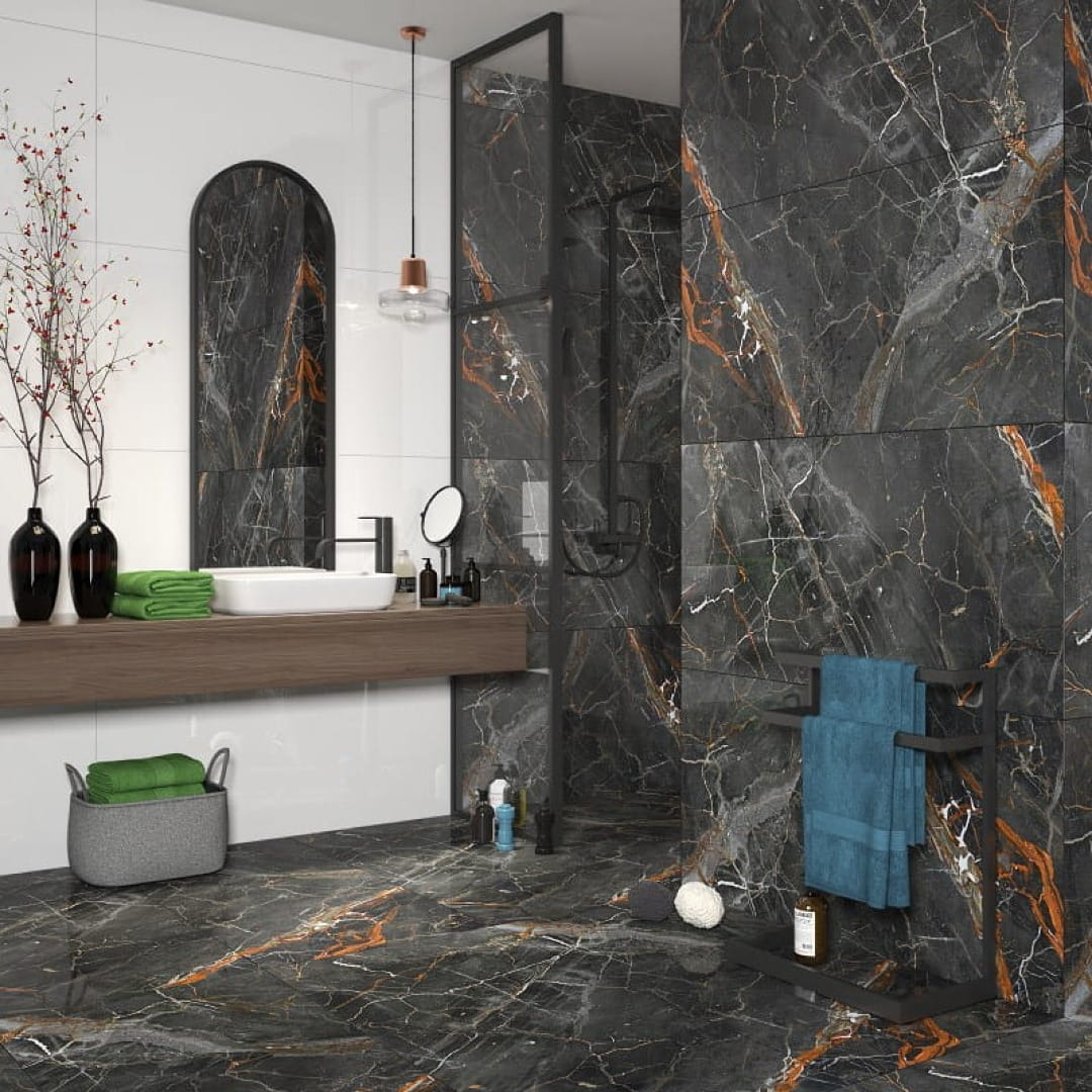 VANITY GREY POLER 60x120 to gres polerowany w eleganckim odcieniu szarości, inspirowany marmurem. Subtelne żyłkowanie i wysoki połysk tworzą luksusową atmosferę.