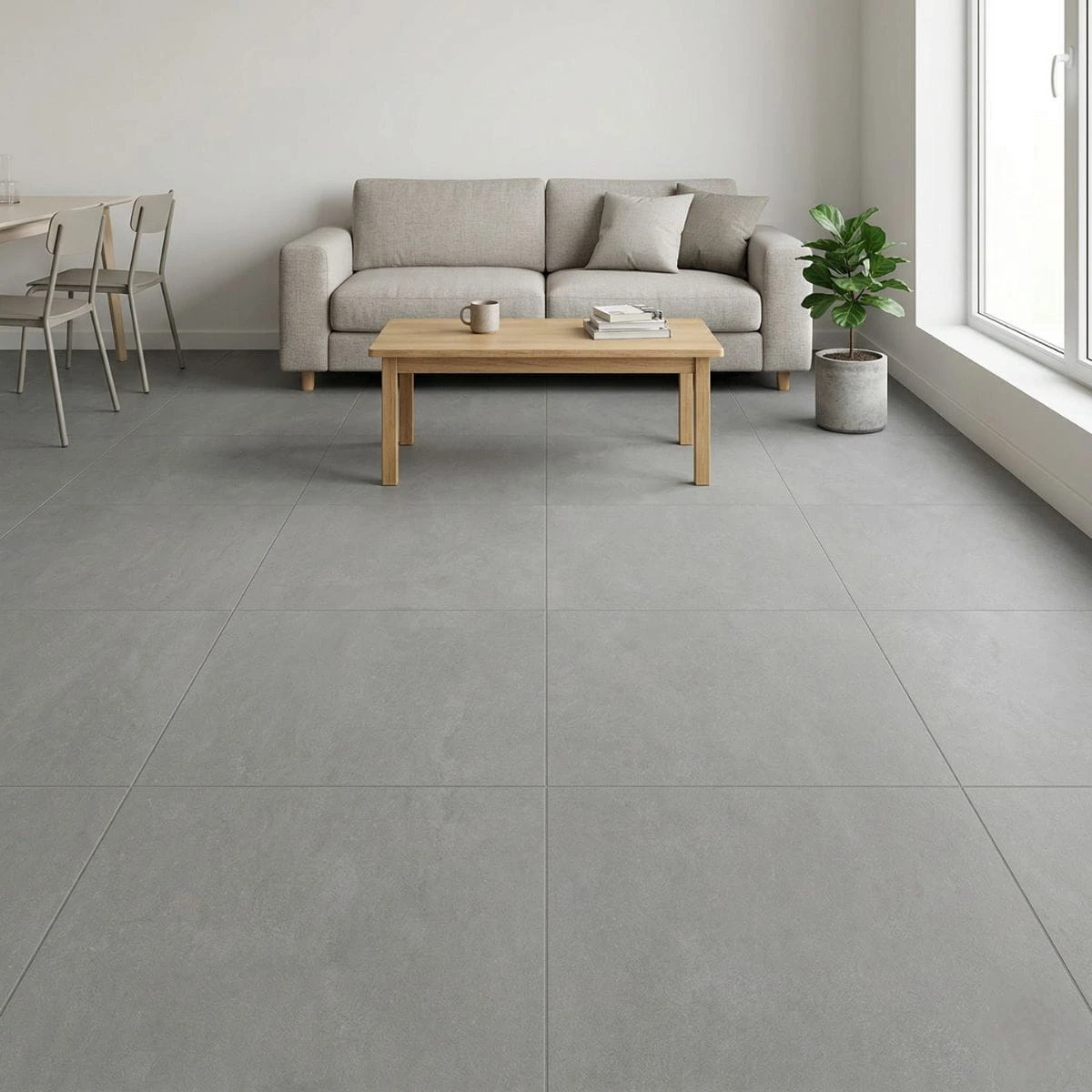 Nowoczesny gres 60x60 w odcieniu szarości z delikatną strukturą carving