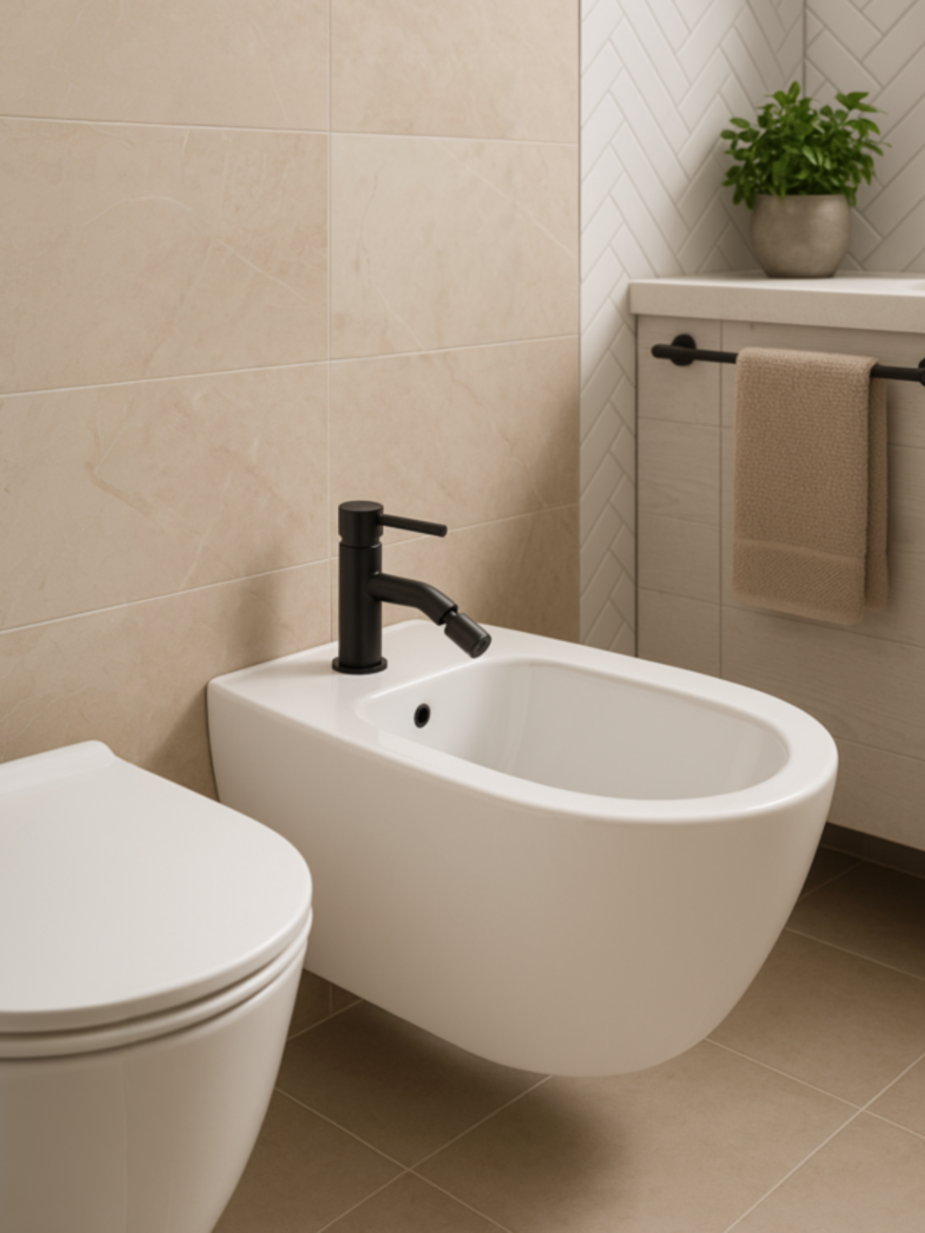 Poznaj baterię bidetową Sirio w kolorze czarnym mat. Wykonana z mosiądzu, wyposażona w ceramiczny wkład 25 mm, aerator Neoperl oraz węże mieszające 3/8” CE, jest idealna do każdej nowoczesnej łazienki.