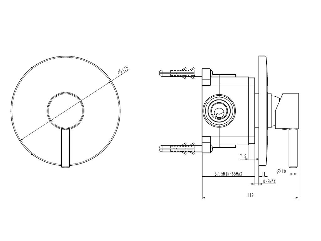 Wewnątrz znajduje się ceramiczna głowica 35 mm, która umożliwia płynne i precyzyjne sterowanie wodą, a okrągła płyta montażowa o średnicy 135 mm estetycznie maskuje otwór w ścianie, podkreślając minimalistyczny charakter produktu. W zestawie znajduje się również skrzynka rejestracyjna, ułatwiająca montaż oraz późniejszy dostęp serwisowy.