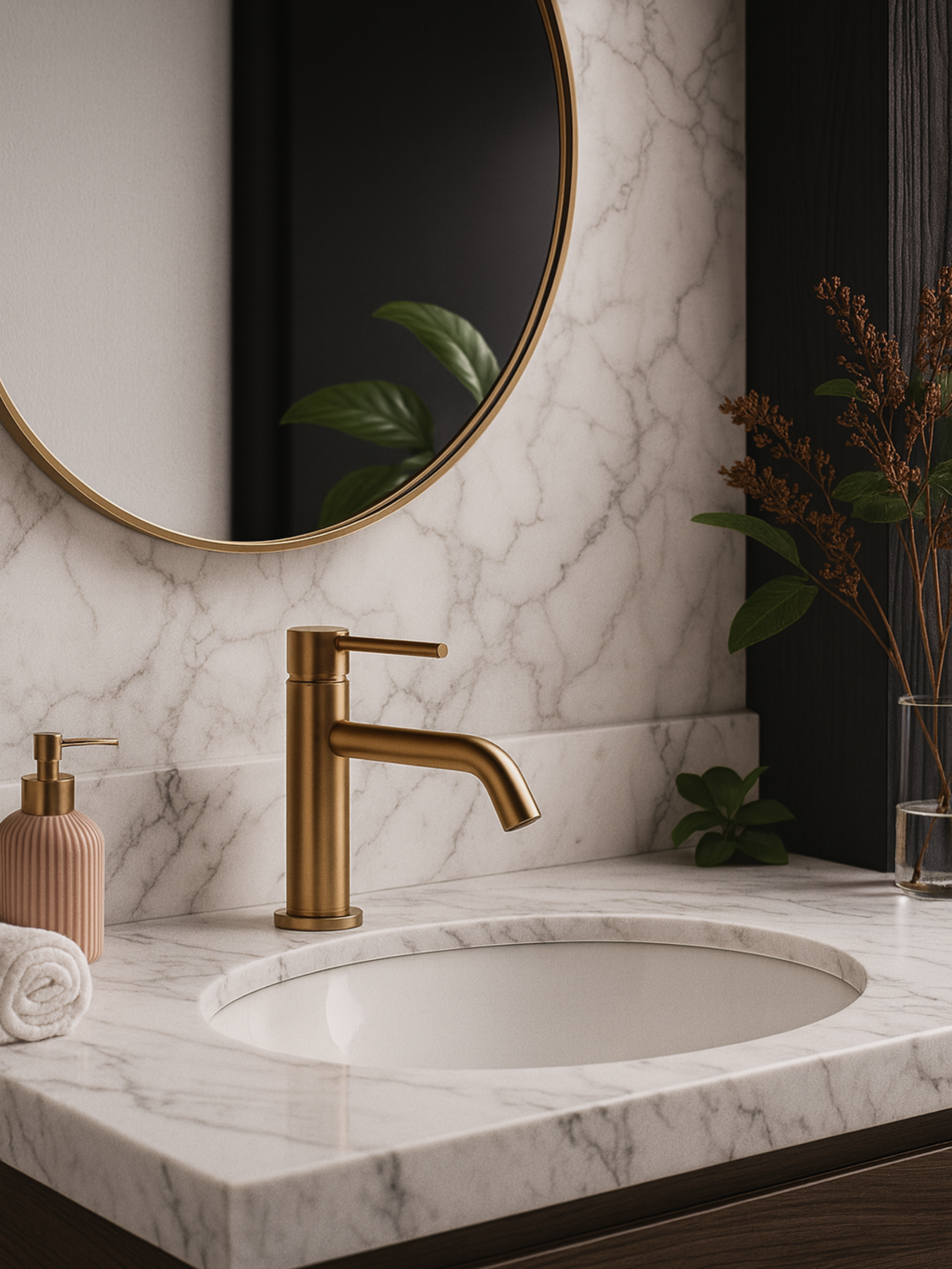 - Powłoka PVD: Physical Vapor Deposition (PVD) to proces, który nie tylko poprawia estetykę baterii, ale także zwiększa jej odporność na zarysowania, korozję i ścieranie. Miedziane wykończenie dodaje elegancji i ciepła każdej łazience.