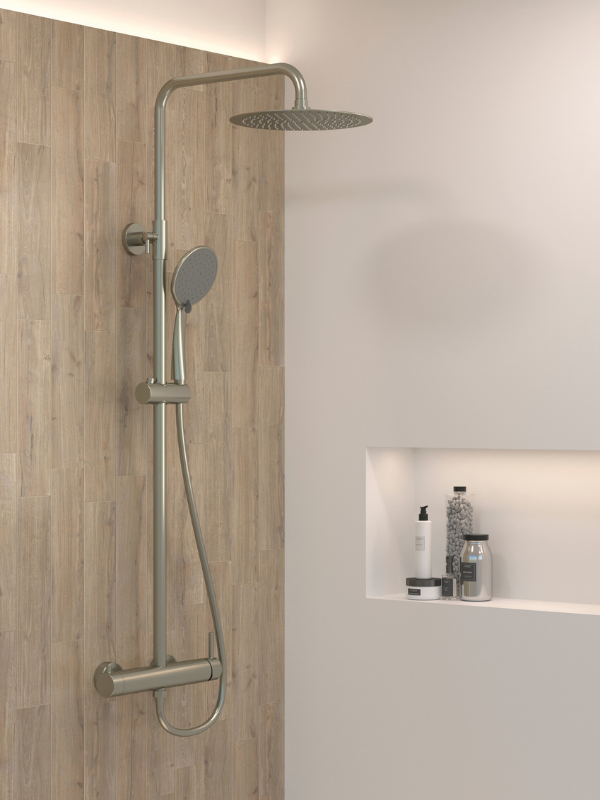 Kolumna prysznicowa SIRIO Nickel PVD to idealne połączenie elegancji i funkcjonalności, zaprojektowane z myślą o nowoczesnych łazienkach. Korpus miksera wykończony szczotkowanym nikielem PVD, teleskopowy drążek oraz 3-funkcyjna słuchawka prysznicowa gwarantują komfort użytkowania. Wąska głowica SS 250 mm z powłoką antywapienną oraz wysokiej jakości wąż prysznicowy z PVC zapewniają trwałość i estetykę.