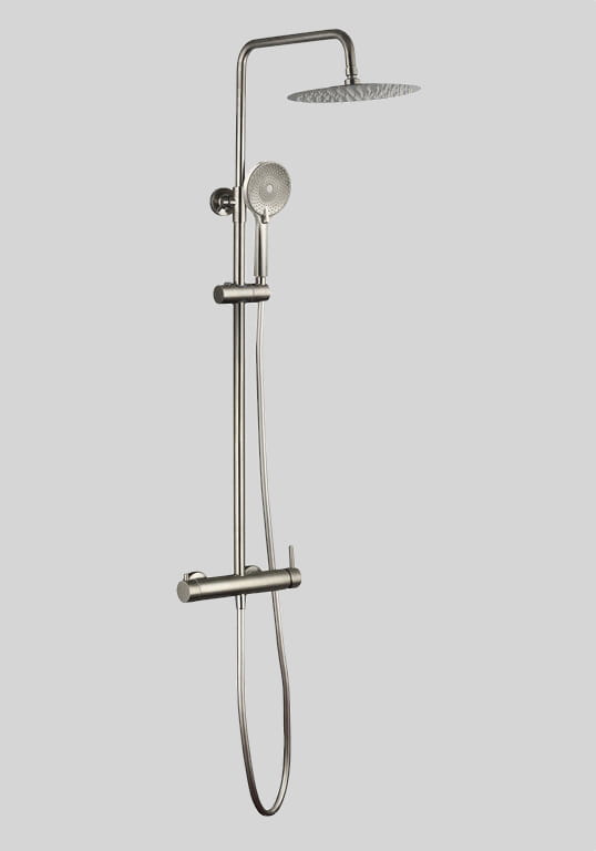 Kolumna prysznicowa SIRIO Nickel PVD charakteryzuje się nie tylko wysoką funkcjonalnością, ale również wyjątkowym wyglądem, który wprowadzi do każdej łazienki nutę nowoczesnego designu. Wykończenie korpusu miksera w szczotkowanym niklu PVD, połączone z teleskopowym drążkiem regulowanym od 90 do 140 cm, oferuje zarówno estetyczny wygląd, jak i wygodę dopasowania do różnych potrzeb użytkownika.