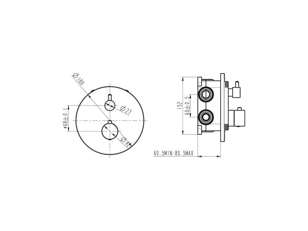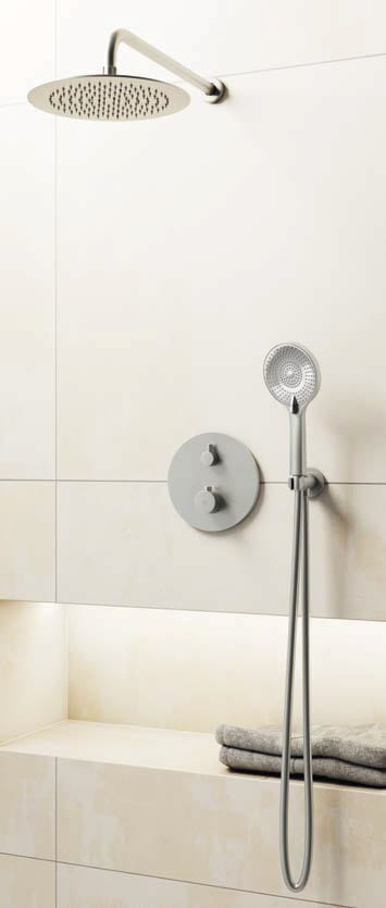Estetykę i funkcjonalność zestawu podkreśla okrągła płyta maskująca Ø20 cm, która doskonale wtapia się w ścianę, tworząc spójny, minimalistyczny wygląd. To kompletne rozwiązanie idealnie sprawdzi się w nowoczesnych łazienkach, w których liczy się nie tylko funkcjonalność, ale również przemyślany, spójny design.